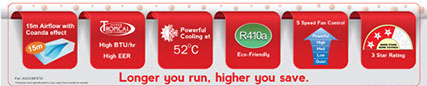 Compressor capacity higher than machine capacity ensures powerful operation at high ambient temperature.